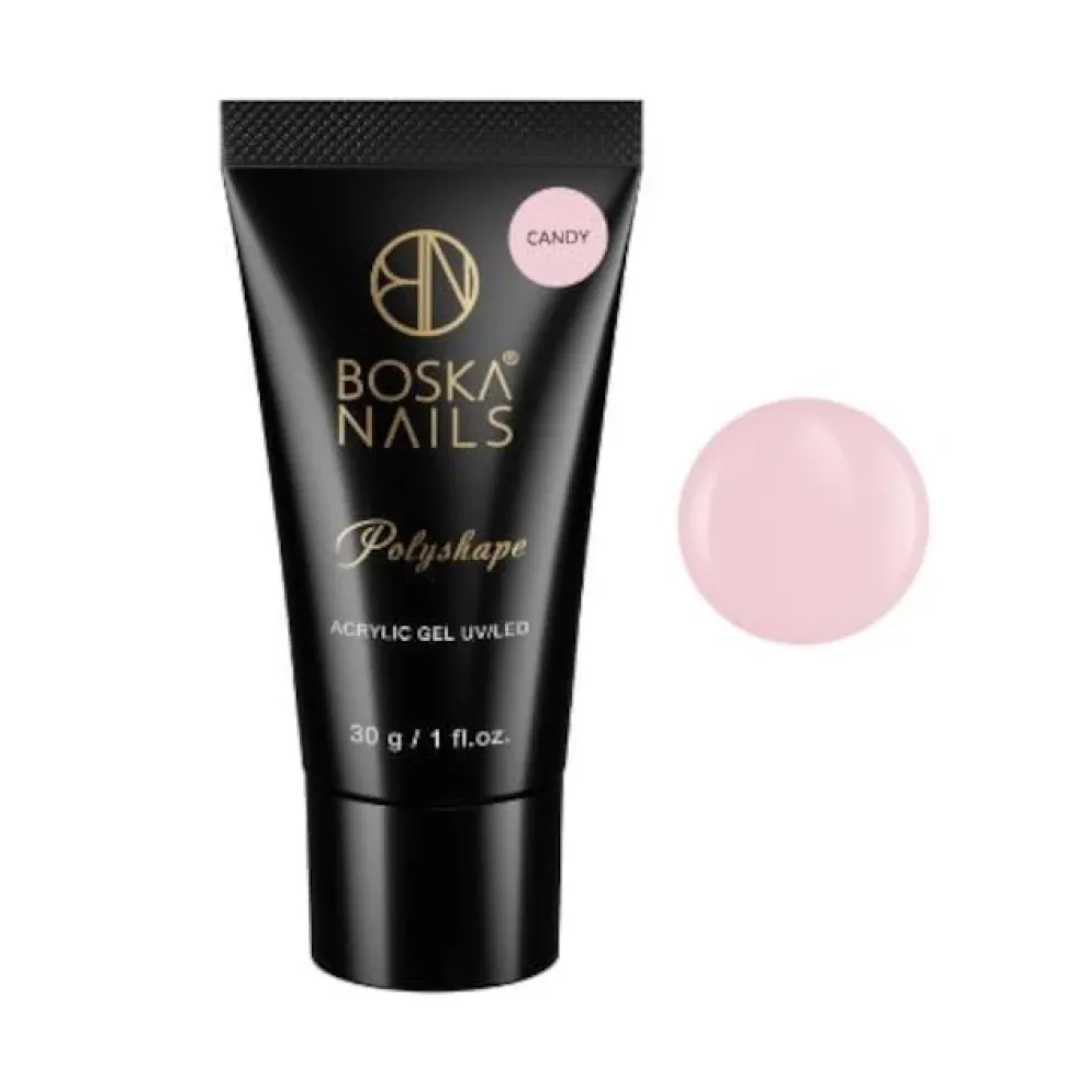 CANDY wyróżnia się bardzo jasnym, różowym kolorem. Jak wszystkie produkty z linii akrylożeli POLYSHAPE jest plastyczny i łatwy w nakładaniu, pracy z dual formami, a także trwały w finalnej stylizacji.