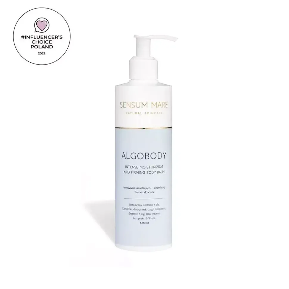 Nawilżająco-ujędrniający balsam do ciała z linii ALGOBODYto pierwszy produkt marki SENSUM MARE stworzony zmyślą o specjalistycznej pielęgnacji skóry ciała, zprzeznaczeniem do skóry, która utraciła jędrność ielastyczność oraz potrzebuje dodatkowej porcji nawilżenia.Balsam łączy w sobie skuteczność nowoczesnychskładników aktywnych o udowodnionym działaniuujędrniającym, wysmuklającym sylwetkę i nawilżającym,takich jak botaniczny ekstrakt z alg (Polyplant OilySeaweed), ekstrakt z wapiennej algi Jania Rubens(Actiporine 8G), wyciąg z czerwonej algi Polysiphoniabrodiei (B-Shape) oraz kompleks dwóch mikroalg iostropestu (Algomega NP®). Zawarta w balsamie kofeinakorzystnie wpływa na zwiotczałą skórę, wygładza i ujędrniaa witamina E chroni skórę przed oznakami starzenia.Balsam ALGOBODY sprawia, że skóra staje się bardziejsprężysta, wygładzona, miękka w dotyku i odzyskujenaturalną witalność.