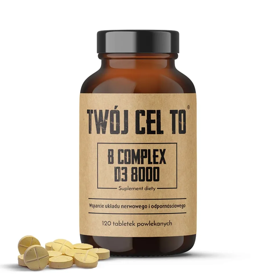 Suplement diety B COMPLEX D3 8000 stanowi źródło witaminy D oraz witaminy grupy B: niacyny (witaminy B3), kwasu pantotenowego, witaminy B6, rybloflawiny (witaminy B2), tiaminy (witaminy B1), kwasu foliowego (witaminy B9), witaminy B12.