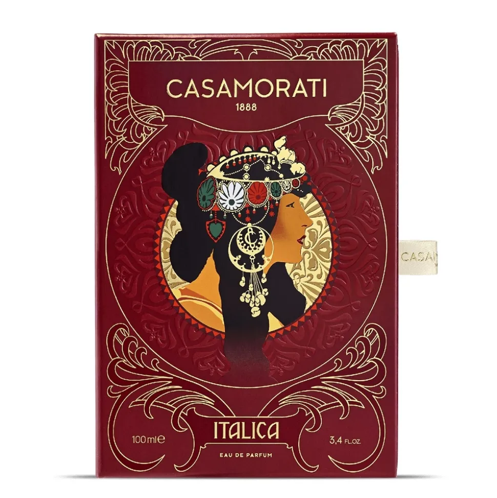 Italica to gourmandowy zapach, któremu naprawdę nie można się oprzeć… Na początku delikatne nuty szafranu, sycylijskich migdałów i kremowego mleka otulają zmysły swoją subtelnością. Serce z wanilią bourbon i słodkim toffi oraz soczysta baza składająca się z drzewa sandałowego i białego piżma tworzą harmonijną całość, która pozostanie na Twojej skórze przez wiele godzin.