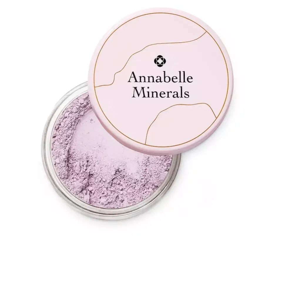 Cień glinkowy Annabelle Minerals w kolorze delikatnego, chłodnego fioletu.