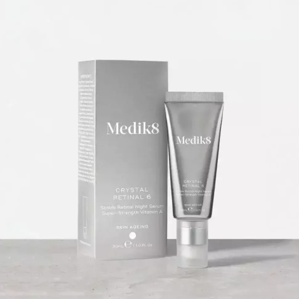 Odkryj na nowo młodzieńczą skórę dzięki najnowszej formie witaminy A w Medik8. Crystal Retinal 6™ zawiera silną pochodną witaminy A o stężeniu 0,06% która w sposób skuteczny lecz bez podrażnień przeciwdziała starzeniu się skóry. Bezkonkurencyjny w swojej skuteczności – badania kliniczne wykazują do 11 razy szybsze działanie w porównaniu do klasycznych formy retinolu. Przełomowy krem na noc w widoczny sposób minimalizuje zmarszczki. Dodatkowo kwas hialuronowy, gliceryna i witamina E, nawilżają skórę na każdym poziomie, zapewniając gładką i bardziej młodzieńczą cerę. Co więcej, Crystal Retinal 6 ™ wykazuje działanie antybakteryjne, zapobiegając powstawaniu niedoskonałości. Już nie musisz wybierać pomiędzy działaniem przeciwstarzeniowym a walką z niedoskonałościami.