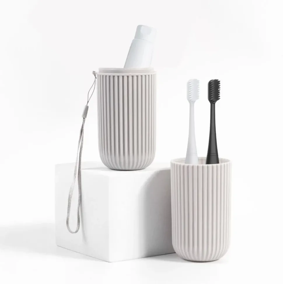 Stylowe etui na pastę i szczoteczkę do zębów.Po otwarciu pełni również funkcję stabilnego kubka na wodę.