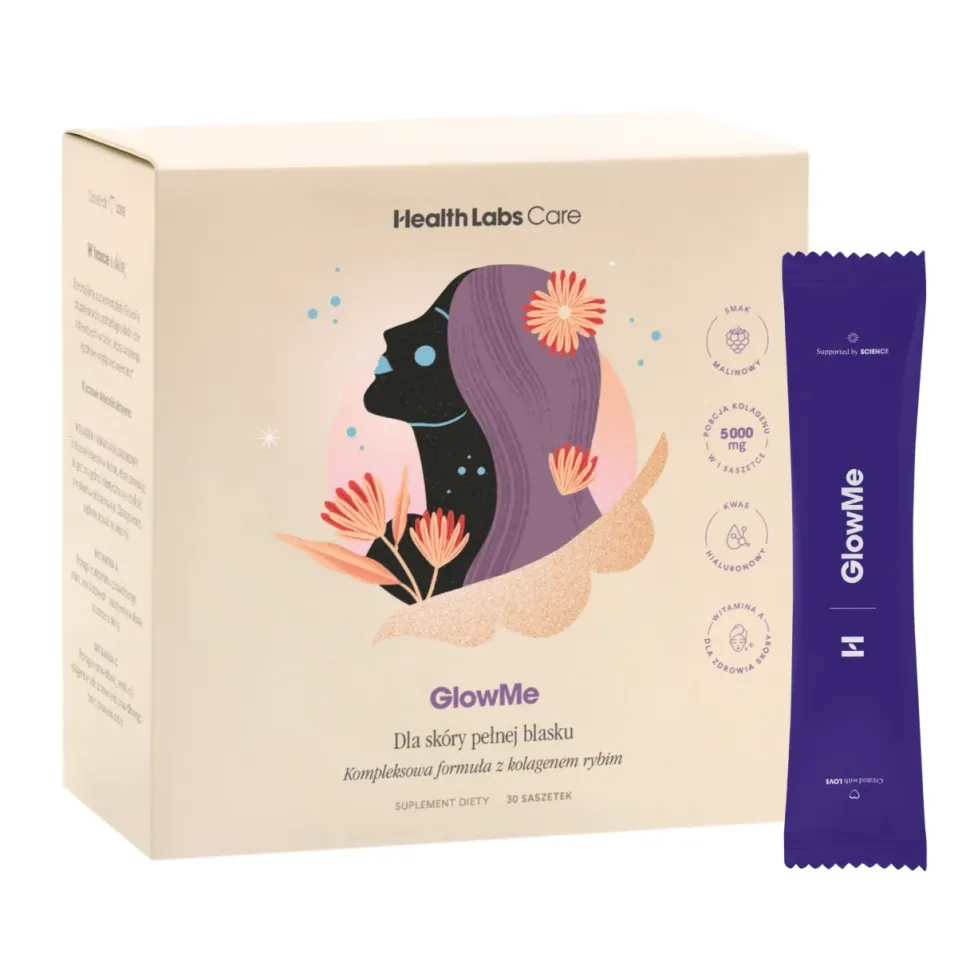 - suplement diety GlowMe zawiera aż 5000 mg kolagenu NatiCol® 4000 w jednej saszetce