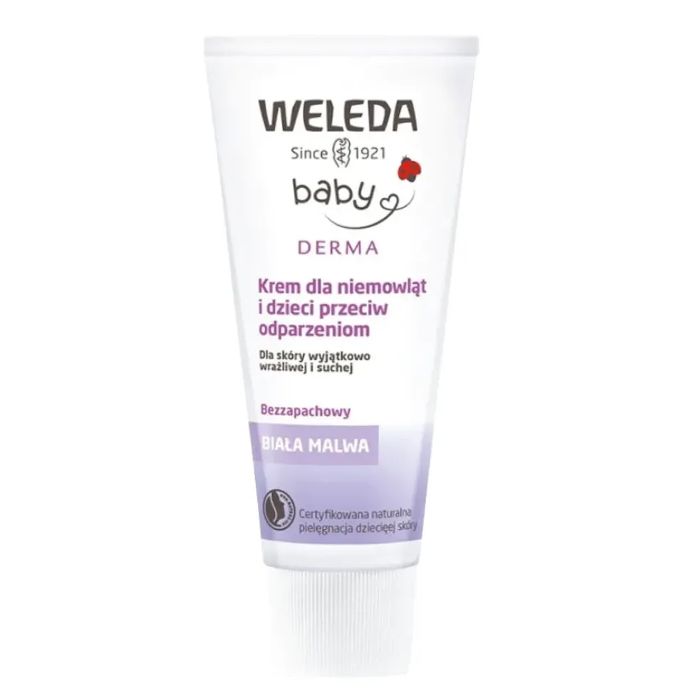 Łagodzący krem dla super wrażliwej, suchej lub atopowej dziecięcej skóry.Delikatny naturalny krem bezzapachowy. Biała malwa, bratek, słodki migdał, wosk pszczeli i olejek kokosowy – to najłagodniejsze prezenty od natury.