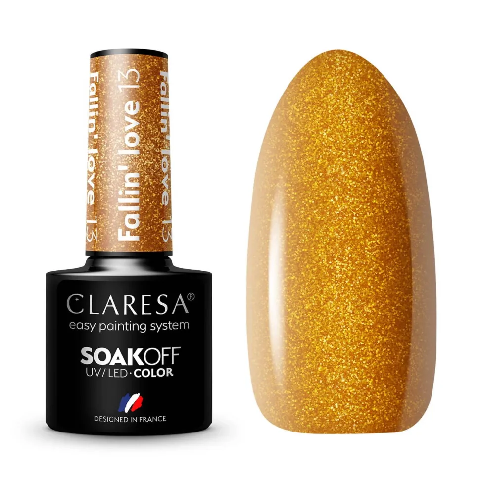 Fallin’ Love 13 to kolor złota w ciepłym odcieniu.Idealnie sprawdzi się jako kolor bazowy lub jako element stylizacji.Kolor ten sprawdzi się nie tylko przy opalonej dłoni, będzie pięknie wyglądał nawet przy jasnej karnacji.