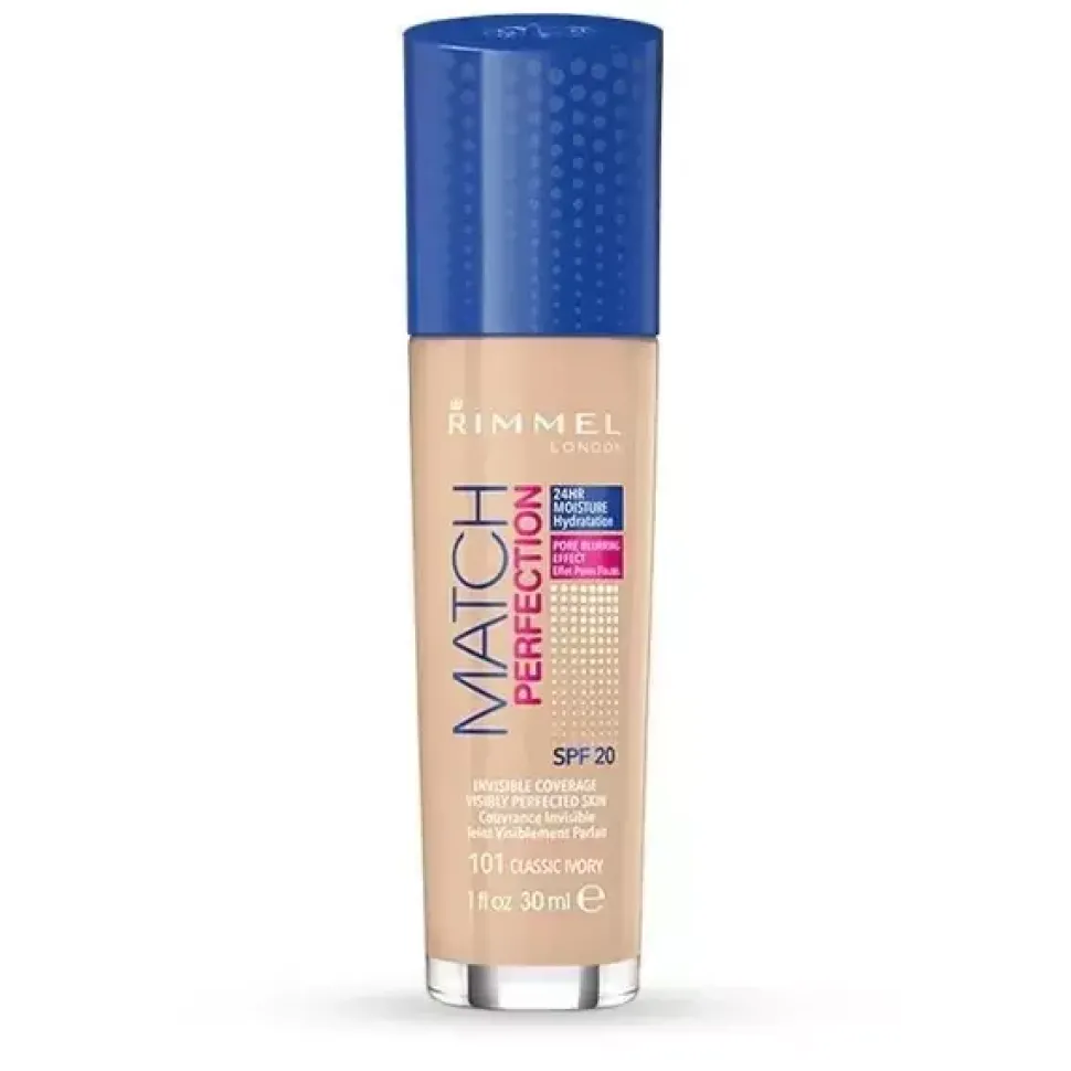 Rimmel podkład dopasowywujący się Match Perfection zapewnia niewidzialne krycie, niezbędną ochronę oraz nawilżenie cery przez 24 godziny.