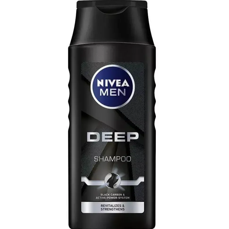 Szampon oczyszczający NIVEA MEN DEEP wzbogacony o czarny węgiel oraz Active-Power-System. Dla mężczyzn, którzy chcą, by uczucie odświeżonych włosów i oczyszczonej skóry głowy trwało na długo. Dokładnie usuwa nadmiar sebum i rewitalizuje skórę głowy. Pozostawia włosy i skórę głowy odświeżone na długo. Jest odpowiedni do codziennego stosowania.
