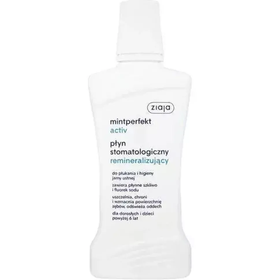 Mintperfekt Activ to reminaluzujący płyn stomatologiczna do płukania jamy ustnej od marki Ziaja. Dokładnie oczyszcza oraz zapewnia piękny, śnieżnobiały uśmiech.