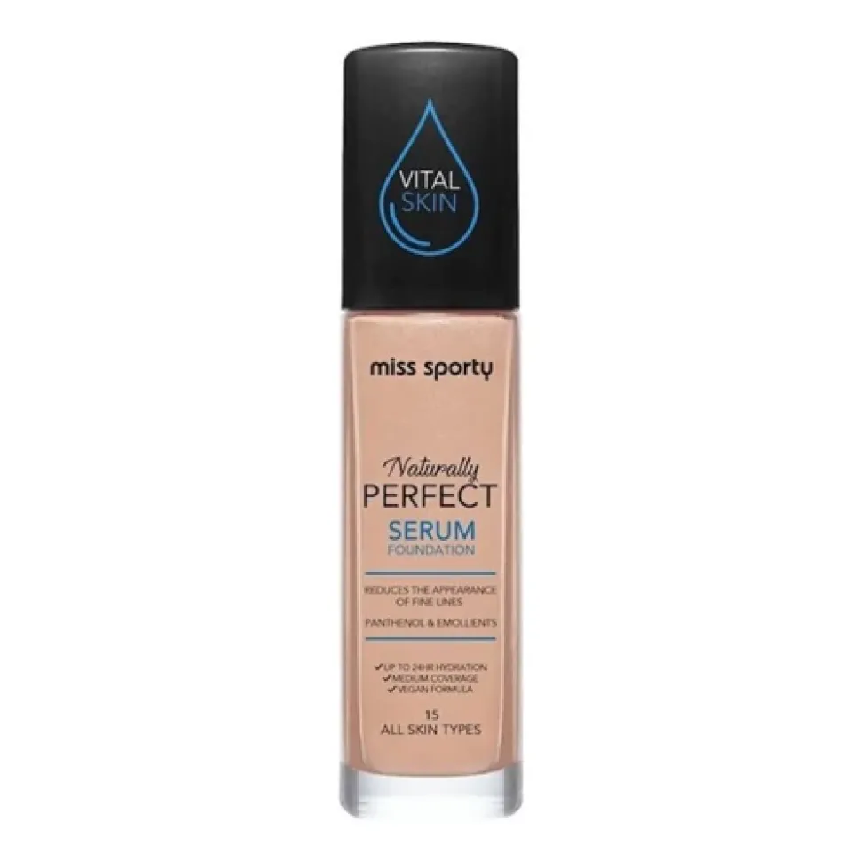 Podkład z kolekcji Naturally Perfect Serum marki Miss Sporty doskonale maskuje niedoskonałości, zaczerwienienia i drobne zmarszczki, a także wyrównuje koloryt cery, nadając jej wypoczęty, pełen energii i witalności wygląd. Kosmetyk nie daje nieestetycznego efektu maski i wygląda naturalnie. Ponadto posiada wspaniałe właściwości pielęgnacyjne. W składzie podkładu serum znajdziesz emolienty i pantenol, które razem intensywnie nawilżą i ukoją skórę.