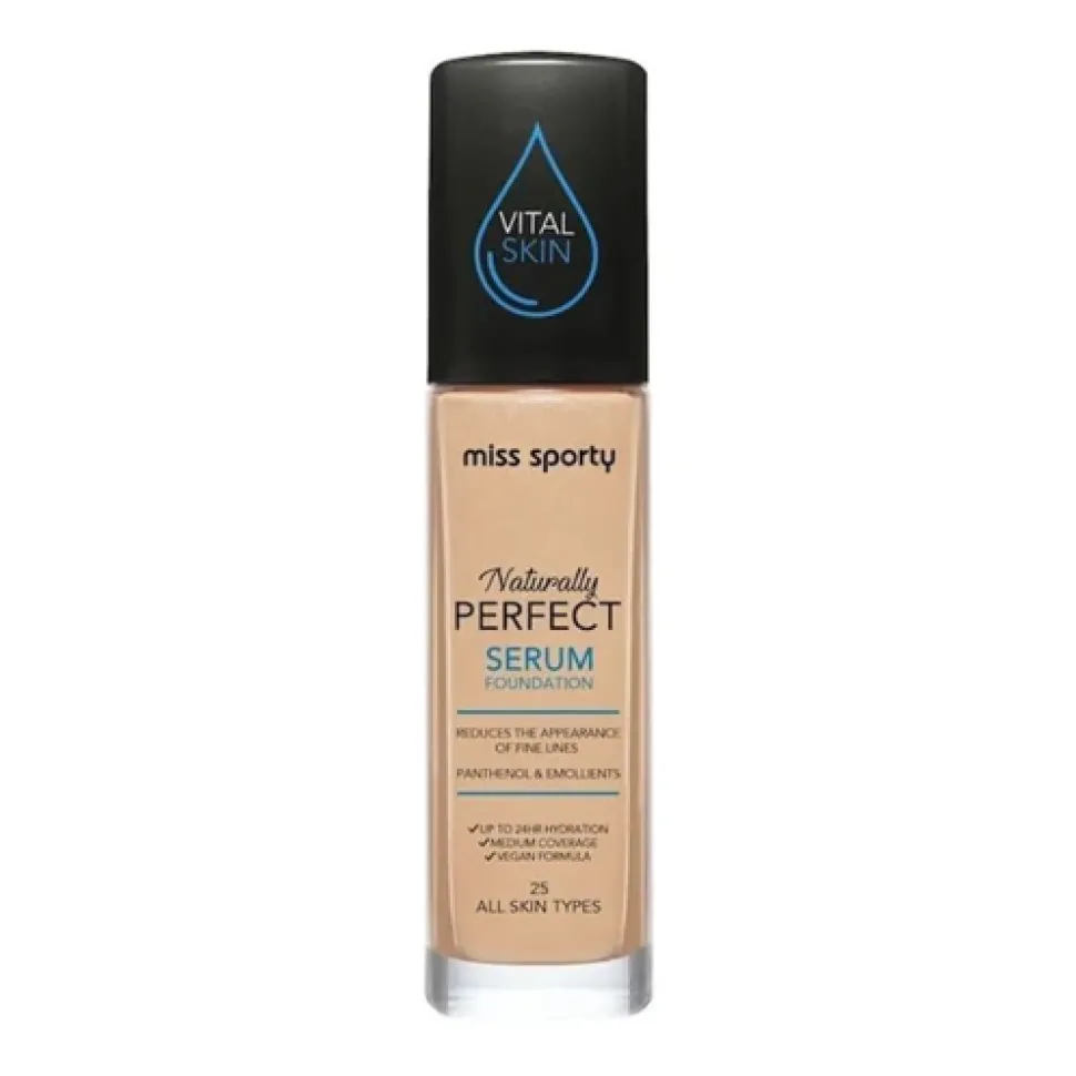Podkład z kolekcji Naturally Perfect Serum marki Miss Sporty doskonale maskuje niedoskonałości, zaczerwienienia i drobne zmarszczki, a także wyrównuje koloryt cery, nadając jej wypoczęty, pełen energii i witalności wygląd. Kosmetyk nie daje nieestetycznego efektu maski i wygląda naturalnie. Ponadto posiada wspaniałe właściwości pielęgnacyjne. W składzie podkładu serum znajdziesz emolienty i pantenol, które razem intensywnie nawilżą i ukoją skórę.
