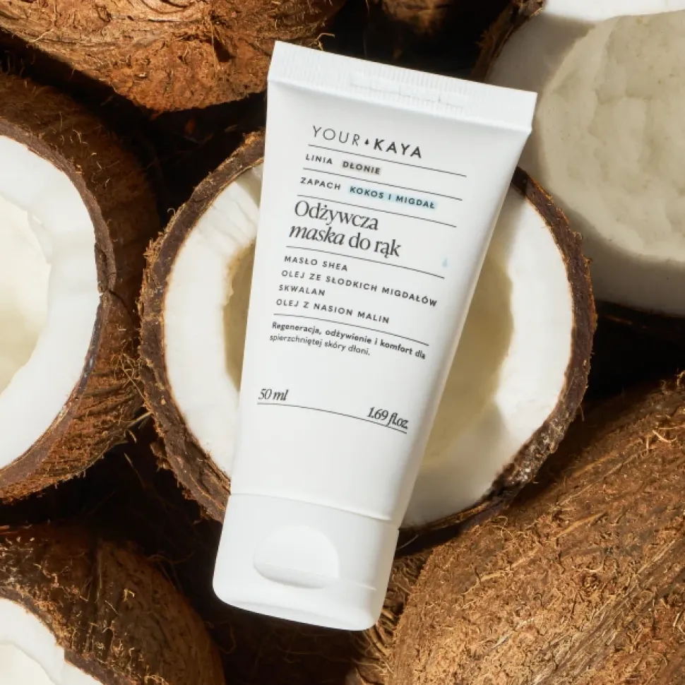 Odżywcza maska do rąk regeneruje skórę dłoni, dając jej uczucie nawilżenia. Bogata formuła z masłem shea, olejami (m.in. ze słodkich migdałów, ryżowym i kokosowym), odżywia skórę dłoni i zapewnia jej niezbędne składniki, które chronią ją przed wpływem zmiennych warunków atmosferycznych.