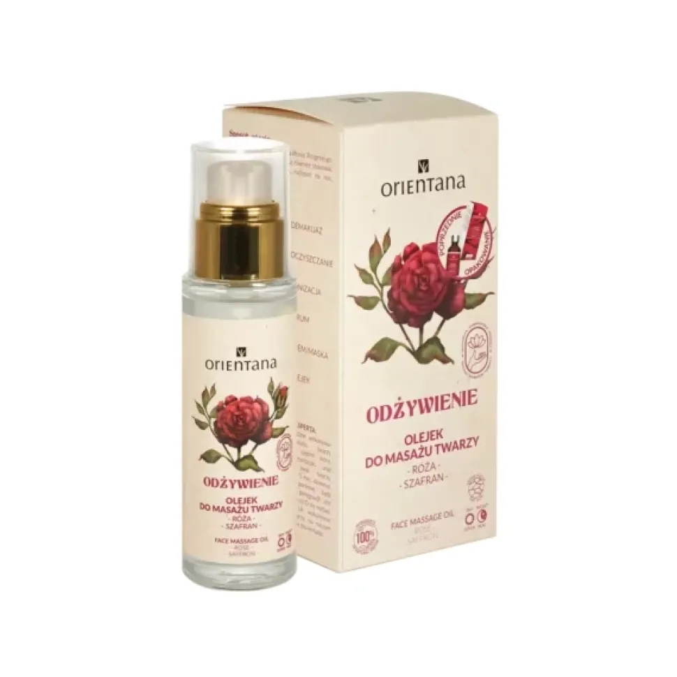 Olejek z róży to bogate źródło nienasyconych kwasów tłuszczowych, które odżywiają skórę i utrzymują jej optymalne nawilżenie. Charakteryzuje się dużą zawartością witaminy A, która intensywnie i naturalnie regeneruje skórę. Szafran to jeden z najsilniejszych antyutleniaczy od tysięcy lat zanany w Azji jako środek przeciwko starzeniu neutralizujący działanie wolnych rodników, a wszystko dzięki zawartych w nim dwóch aktywnych środków: safranalu i krocynie.