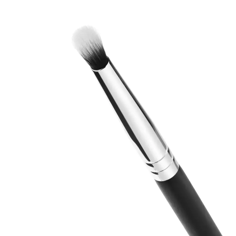 Pędzel do cieniowania małych powierzchni. Rozciera kredki, eyelinery i cienie płynne dając bardzo miękki efekt. Idealny do nakładania cieni prasowanych lub sypkich w wewnętrznym kąciku oka i na dolnej powiece.