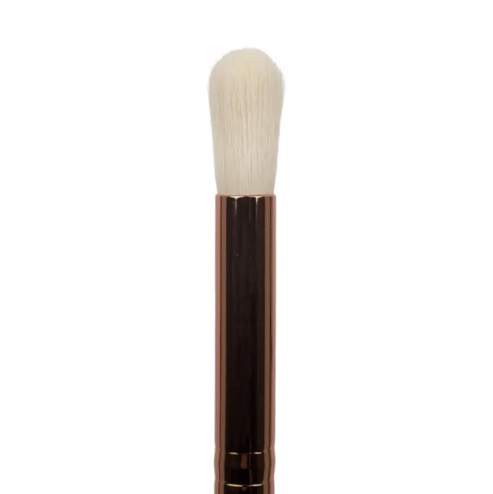Pędzle do blendowania cieni na powiece. Włosie długie, bardzo miękkie, syntetyczne wyprofilowane tak, aby szybko stworzyć perfekcyjną mgiełkę i zatrzeć wszelkie granice między kolorami. Łatwo się myje. Posiada oryginalny design – białe włosie, pomarańczowy trzonek i błyszczącą skuwkę.