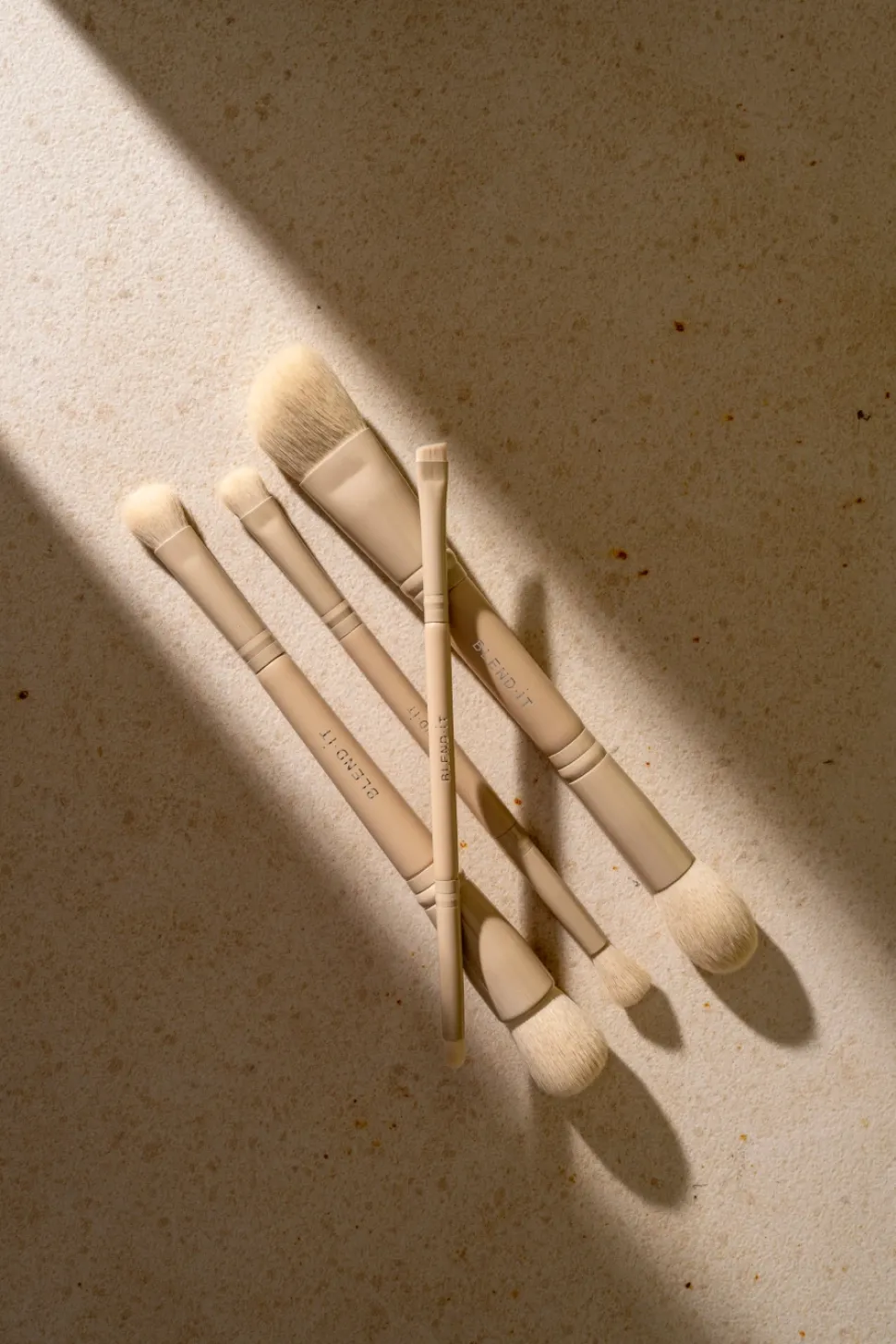 Odkryj wyjątkową kolekcję dwustronnych pędzli Duo od BLEND IT! Każdy z nich został stworzony z syntetycznego, wegańskiego włosia, które cechuje niezwykła miękkość.