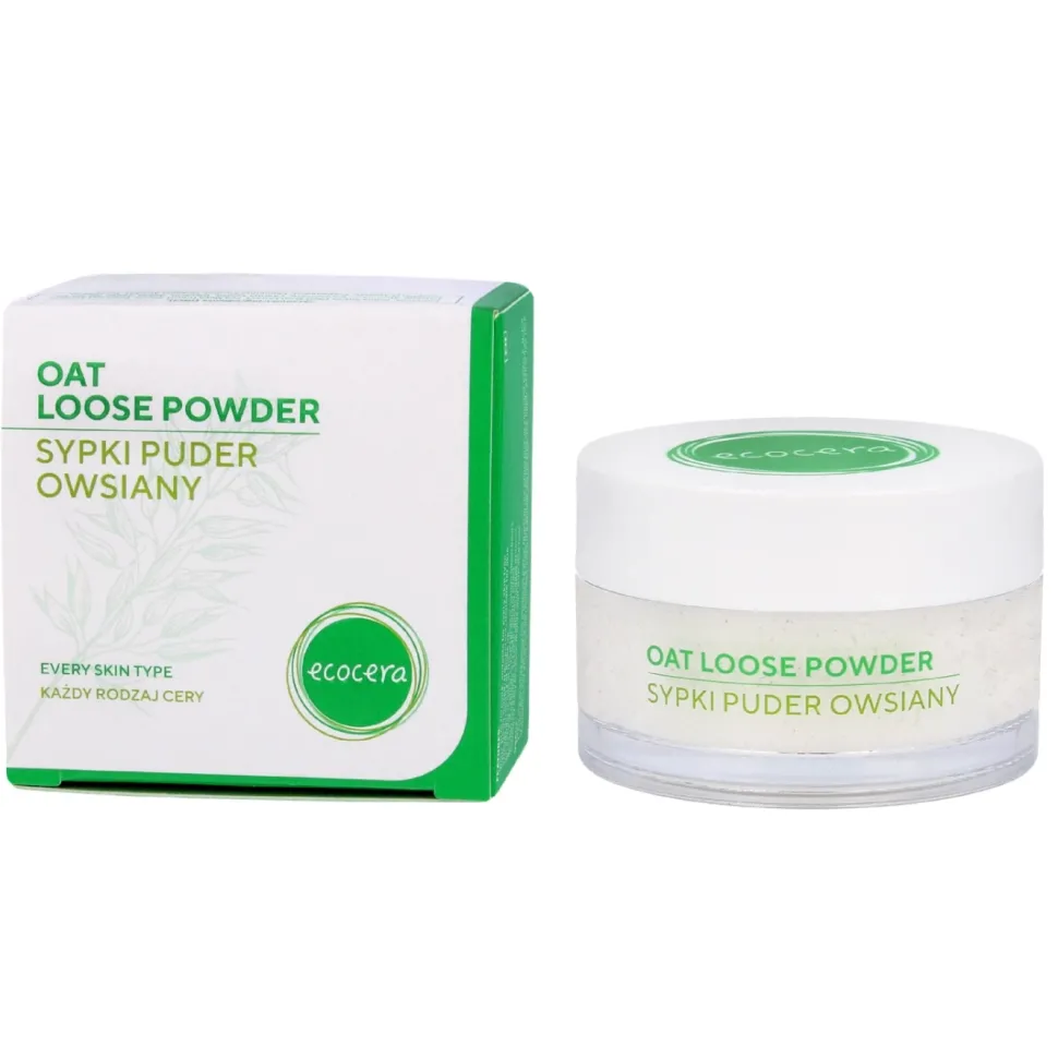 Naturalny wegański Sypki Puder Owsiany ECOCERA skutecznie pochłania nadmiar sebum, długotrwale matując cerę oraz zapewniając jej piękny i naturalny wygląd.
