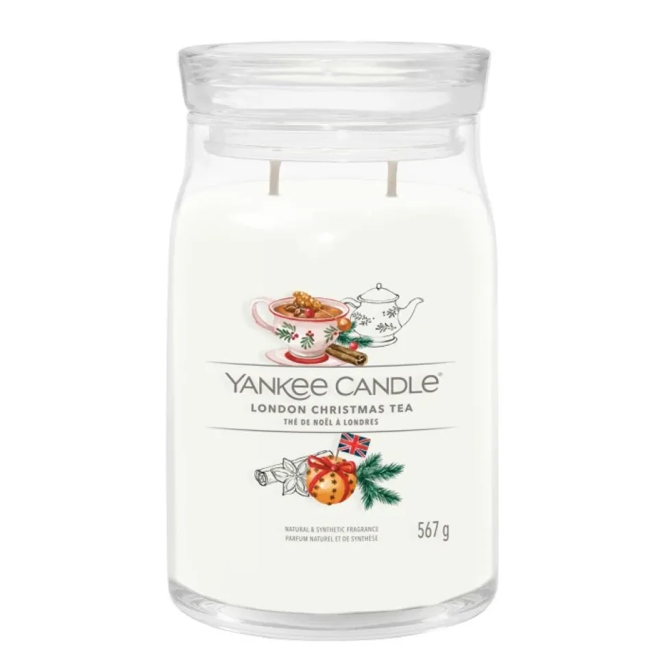 Duża świeca Signature London Christmas Tea Yankee Candle. Ciepło popołudniowej herbaty sprawi, że Święta Bożego Narodzenia w Londynie będą jeszcze doskonalsze dzięki aromatom imbiru, czarnej herbaty i drzewa cynamonowego.