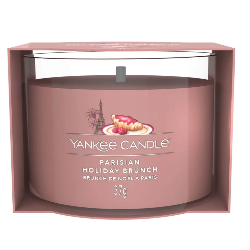 Średnia świeca Signature Parisian Holiday Brunch Yankee Candle – Daj się przenieść do wymarzonej piekarni w Paryżu, wypełnionej nutami zapachowymi maślanych rogalików, konfitur malinowych, fig i brązowego cukru.
