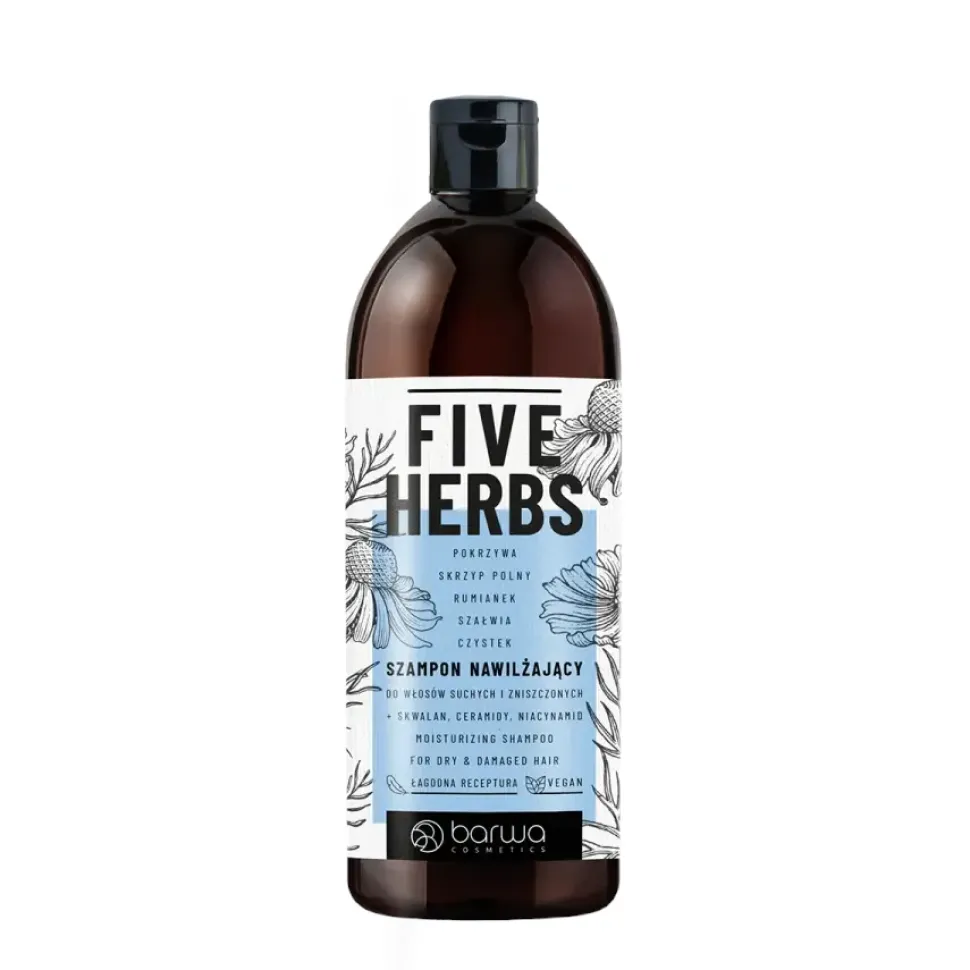 Szampon Nawilżający Five Herbs jest przeznaczony do włosów suchych i zniszczonych. Szampon delikatnie oczyszcza skórę głowy – nie narusza bariery ochronnej, daje dawkę nawilżenia włosom.