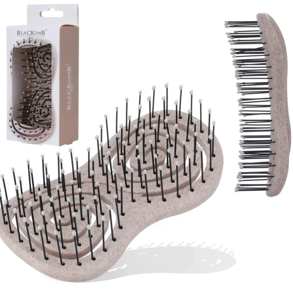 Blackomb Eco – Ekologiczna Szczotka do Włosów z Pszenicy – Dla Ziemi i Twoich Włosów!Podkreśl swój ekologiczny styl życia i angażuj się w ochronę naszej planety, jednocześnie dbając o swoje włosy! Ta szczotka do włosów, wykonana w 100% z odnawialnej pszenicy, jest świadomym wyborem dla tych, którzy szukają produktów przyjaznych dla środowiska.Każdy element tej szczotki jest zaprojektowany z myślą o minimalnym wpływie na środowisko. Pszenica, jako materiał bazowy, jest nie tylko biodegradowalna, ale także wymaga mniej zasobów w produkcji w porównaniu z tradycyjnymi tworzywami sztucznymi. Wybierając tę szczotkę, dokonujesz wyboru na rzecz mniejszego śladu węglowego i mniejszej ilości odpadów.Główne właściwości szczotki do włosów Blackomb Eco:Ekologiczna i Biodegradowalna Nasza szczotka do włosów została zrobiona ze słomy pszenicznej – naturalnego i odnawialnego surowca, który jest w 100% biodegradowalny. Kupując ten produkt, wspierasz produkcję zrównoważoną i ograniczasz produkcję plastikowych odpadów.Ergonomiczny kształt: Dzięki innowacyjnemu kształtowi, szczotka idealnie dopasowuje się do głowy, co umożliwia równomierne i efektywne rozczesywanie włosów.Przyjazna dla Włosów i Skóry Głowy – Dzięki starannie zaprojektowanym, miękkim włosiom zakończonych kulką, nasza szczotka masuje skórę głowy podczas używania, promując zdrowy wzrost włosów i zapobiegając ich łamaniu.Uniwersalna – Doskonale sprawdza się dla wszystkich typów i długości włosów, ułatwiając codzienną pielęgnację zarówno włosów prostych, jak i kręconych.Ergonomiczny Design – Lekka i ergonomiczna rękojeść zapewnia komfort i łatwość użycia, a jej naturalny, ciepły odcień wprowadza do Twojej łazienki kawałek natury.Poręczność i kompaktowy rozmiar – czynią ją idealnym towarzyszem w podróży, w siłowni czy nawet w małej torebce na co dzień. Mimo niewielkich rozmiarów, jej wydajność i skuteczność w pielęgnacji włosów jest niezaprzeczalna.