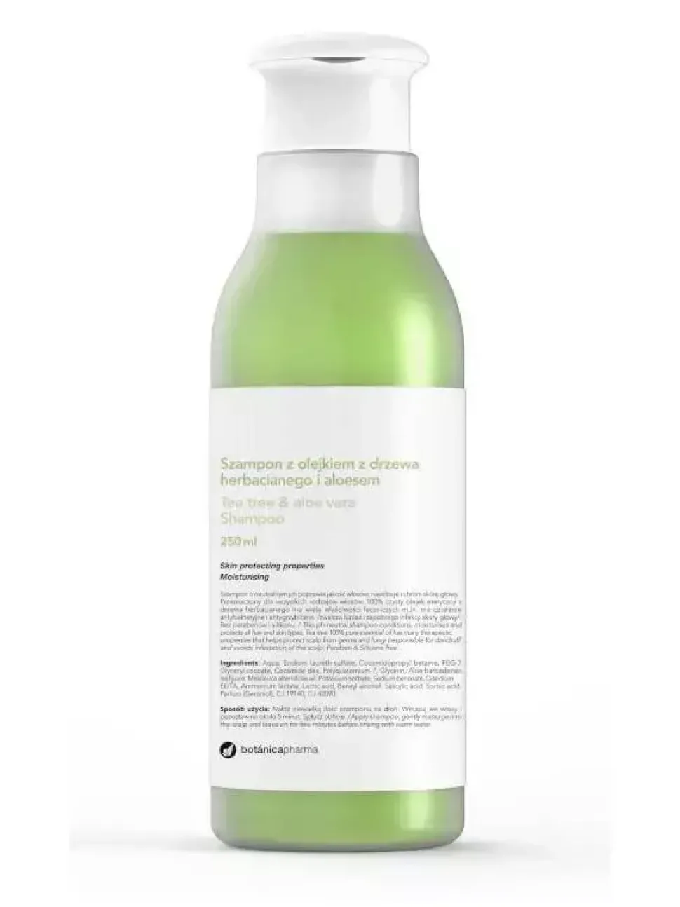 Szampon o neutralnym ph poprawia jakość włosów, nawilża je i chroni skórę głowy. Przeznaczony dla wszystkich rodzajów włosów. 100% czysty olejek eteryczny z drzewa herbacianego ma wiele właściwości leczniczych m.in. działanie antybakteryjne i antygrzybiczne. Zwalcza łupież i zapobiega infekcji skóry głowy.