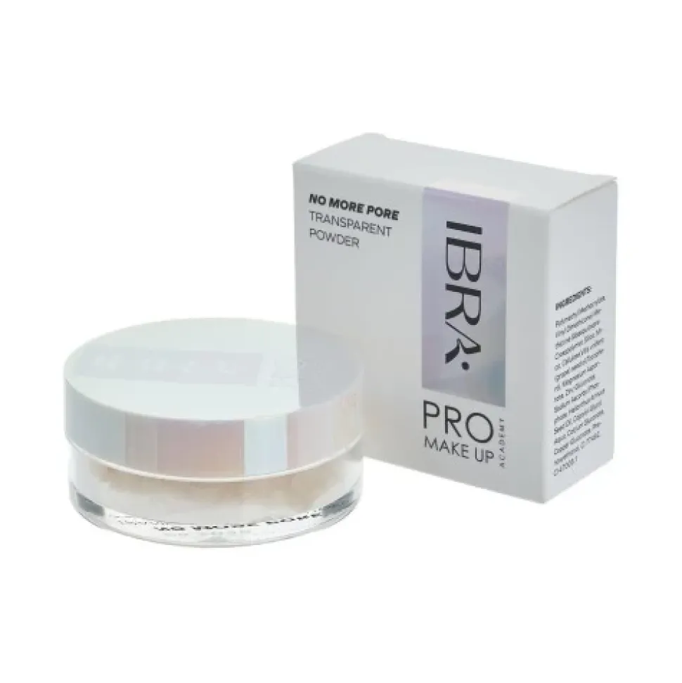 IBRA Ultralekki puder transparentny No More Pore to sypki puder, który pięknie wygładza i delikatnie matuje skórę, nadając jej jedwabiste wykończenie. Dzięki transparentnej formule, idealnie dopasowuje się do każdego odcienia skóry, redukując nadmiar sebum i zapewniając matowy efekt przez cały dzień. Puder jest drobno zmielony, lekki i nie obciąża skóry, co sprawia, że jest komfortowy w noszeniu, a jego długotrwały efekt eliminuje potrzebę częstych poprawek.