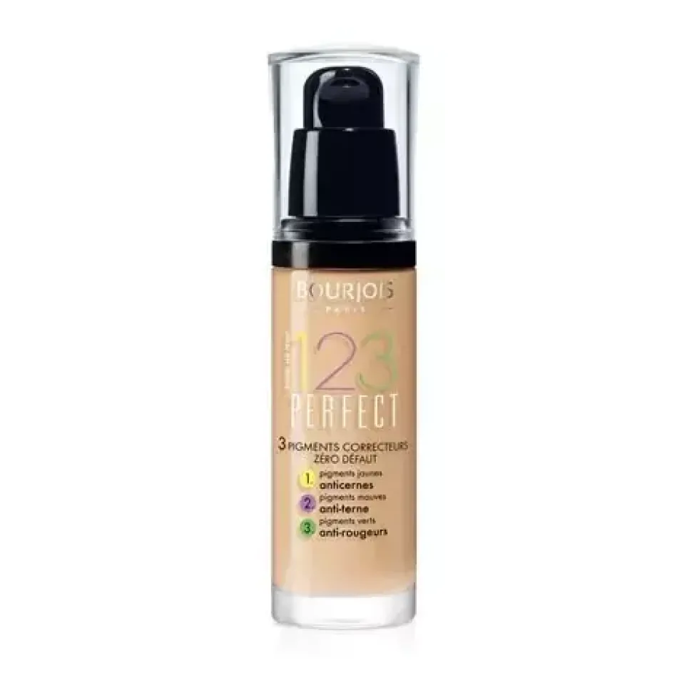Bourjois 123 Perfect to ujednolicający podkład do twarzy, zawierający 3 rodzaje pigmentów korygujących cerę: