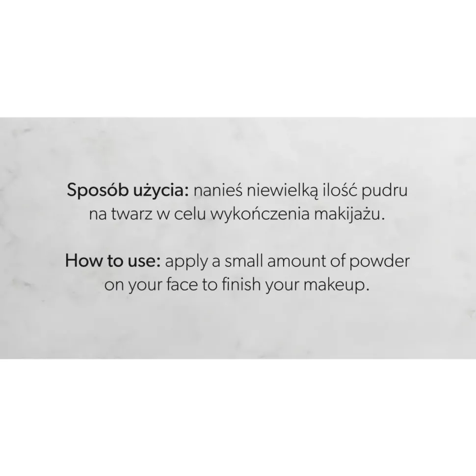 - Łatwa aplikacja: Sypki puder łatwo się rozprowadza, zapewniając równomierne pokrycie i komfort noszenia.