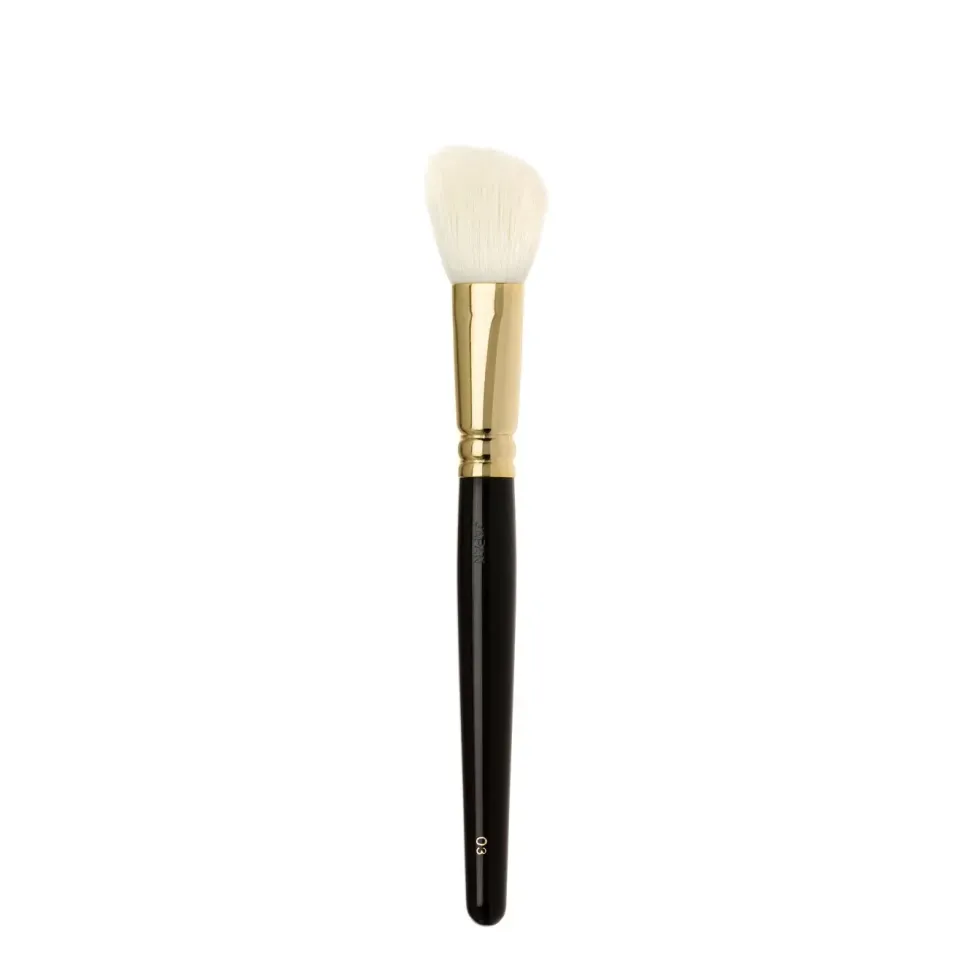 Ścięty kształt pędzla przypomina tradycyjne pędzle do różu, jednak sprawdza się nie tylko w tej roli. Doskonały przy aplikacji rozświetlacza jak i konturowania twarzy.