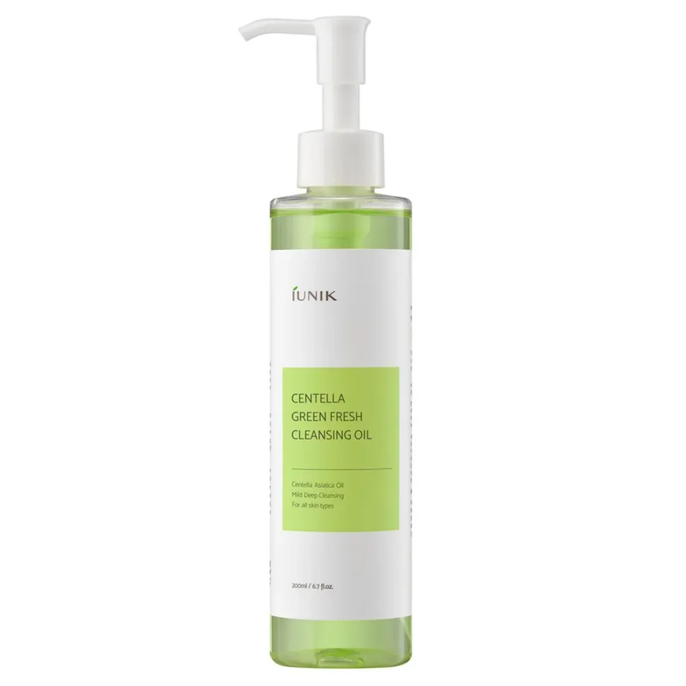 iUNIK – Centella Green Fresh Cleansing Oil – wegański olejek do demakijażu, który głęboko oczyszcza i pielęgnuje skórę. Skutecznie usuwa makijaż, nie powodując przy tym podrażnień. Dzięki wysokiej zawartości olejów roślinnych, skóra jest dokładnie oczyszczona i zyskuje kompleksową pielęgnację. Wyjątkowy olejek z wąkroty azjatyckiej zmniejsza stany zapalne, łagodzi podrażnienia oraz przyspiesza regenerację naskórka. Dodatkowo kosmetyk przyczynia się do zmniejszenia szorstkości i suchości, przywracając skórze gładkość i aksamitną miękkość.