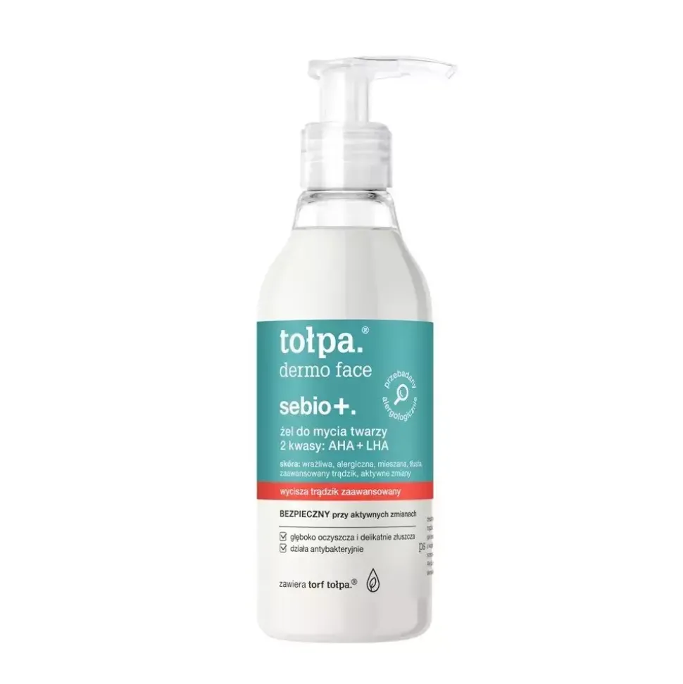 kwas AHA kwas mlekowy, kwas LHA kwas kapriolowo, salicylowy, kompleks siarczanu cynku i oligosacharydów, Torf tołpa, multiroślinny antyoksydant naturalnie chroni i wzmacnia skórę wrażliwą składniki (INCI) Aqua, Cocamidopropyl Betaine, Glycerin, DISODIUM COCOAMPHODIACETATE, Acrylates, C10, 30 Alkyl Acrylate Crosspolymer, Parfum, Peat Extract, Capryloyl Salicylic Acid, Hydrolyzed Algin, Lactic Acid, SODIUM LACTATE, Zinc Sulfate, Styrene, Acrylates Copolymer, Sodium Chloride, SODIUM HYDROXIDE, Tetrasodium EDTA, Sodium Lauryl Sulfate, METHYLPROPANEDIOL, PHENOXYETHANOL, Caprylyl Glycol, Benzoic Acid, torf tołpa.®, kwas AHA: kwas mlekowy, kwas LHA: kwas kapriolowo-salicylowy, kompleks siarczanu cynku i oligosacharydów. torf tołpa.® multiroślinny antyoksydant naturalnie chroni i wzmacnia skórę wrażliwą składniki (INCI) Aqua, ACRYLATES/C10-30 ALKYL ACRYLATE CROSSPOLYMER, Styrene/ Acrylates Copolymer