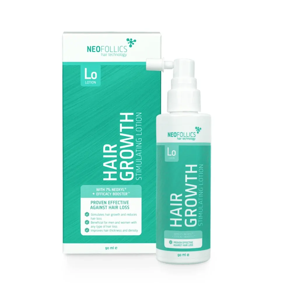 Lotion Neofollics nakłada się bezpośrednio na skórę głowy. Efficacy Booster™ z kwasem hialuronowym i liposomami zapewnia skuteczne wchłanianie składników aktywnych. Badania naukowe wykazały, że Neofollics Lotion ma pozytywny wpływ na stymulację wzrostu włosów, hamuje ich wypadanie, a także wspiera ich gęstość. 92% badanych wskazało, że widzi poprawę wzrostu włosów.
