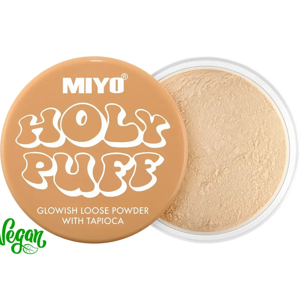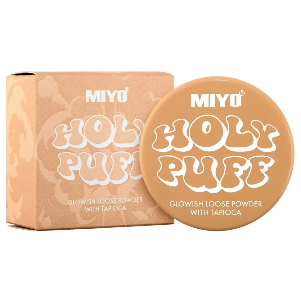 Sypki puder Holy Puff utrwali Twój makijaż, gwarantując perfekcyjny efekt dewy skin przez cały dzień.