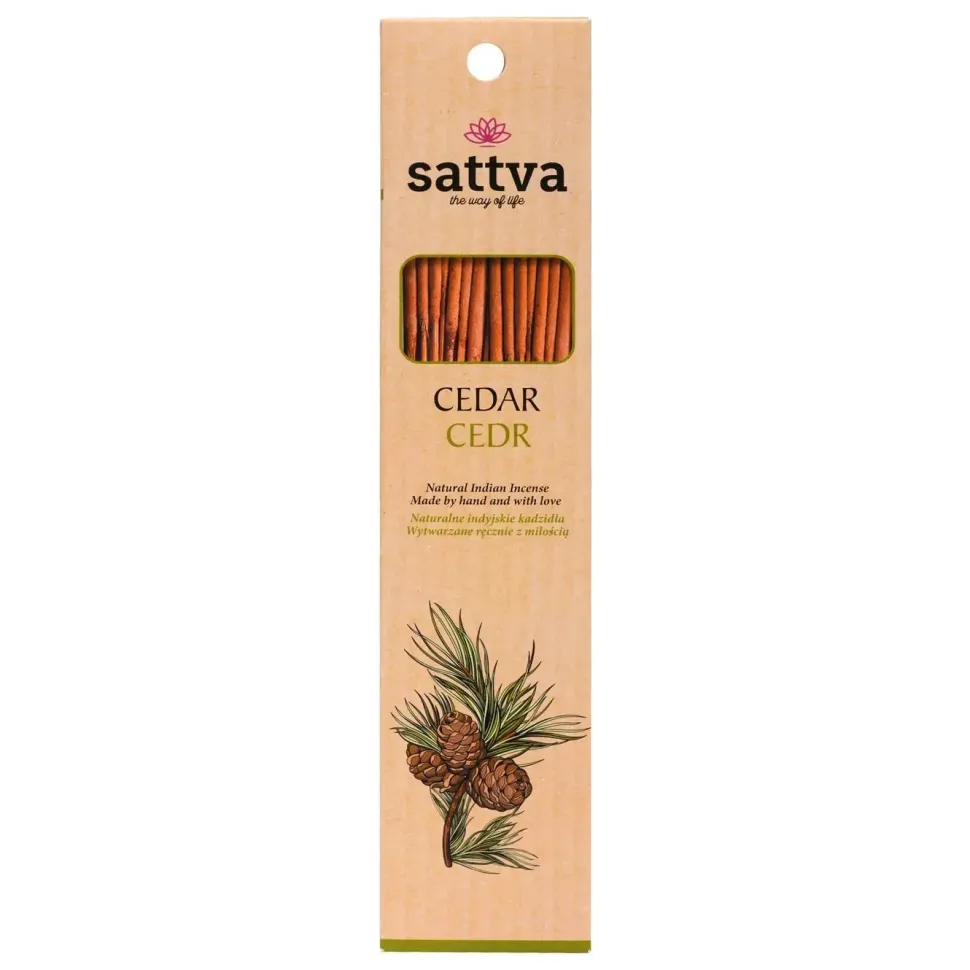 Cedr jest drzewem z rodziny sosnowatych, który jest uznawany za zioło ochronne. Wykorzystywany jest do wszelkiego rodzaju rytuałów i obrzędach. Posiada wspaniały aromat, który się utrzymuje w naszym pomieszczeniu.Kadzidła wytwarzane są z esencji kwiatów, ziół, drewna, żywic roślinnych i miodu. Ręcznie zwijany na bambusa.