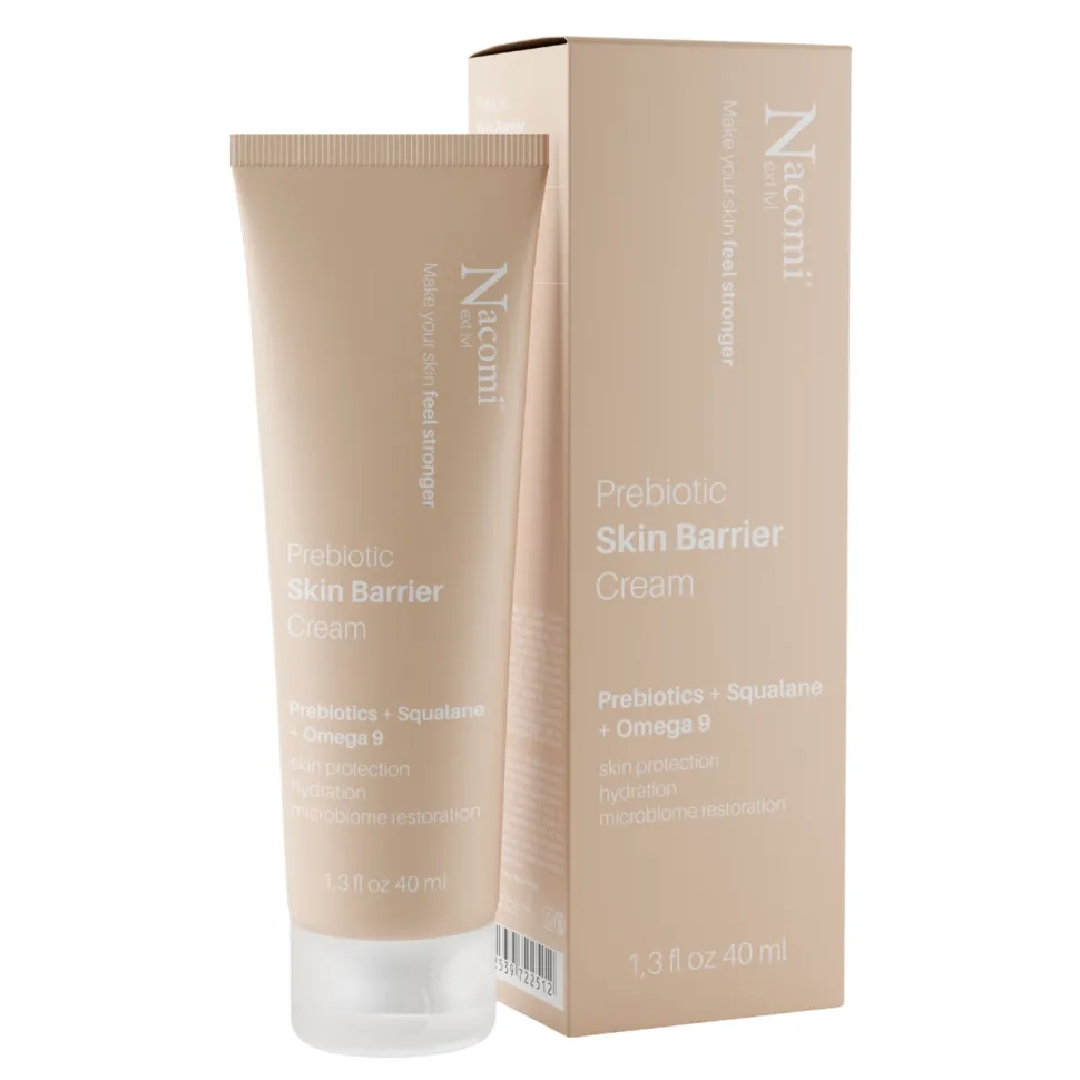 Prebiotic Skin Barrier Cream łączy w sobie moc prebiotyku, skwalanu i omega 9, zapewniając kompleksową ochronę skóry. Skutecznie nawilża, przyspiesza jej regenerację, niweluje widoczność drobnych zmarszczek i wzmacnia naturalną barierę ochronną, przywracając równowagę mikrobiomu. Sprawia, że skóra staje się miękka, gładka, elastyczna i bardziej odporna na czynniki zewnętrzne.
