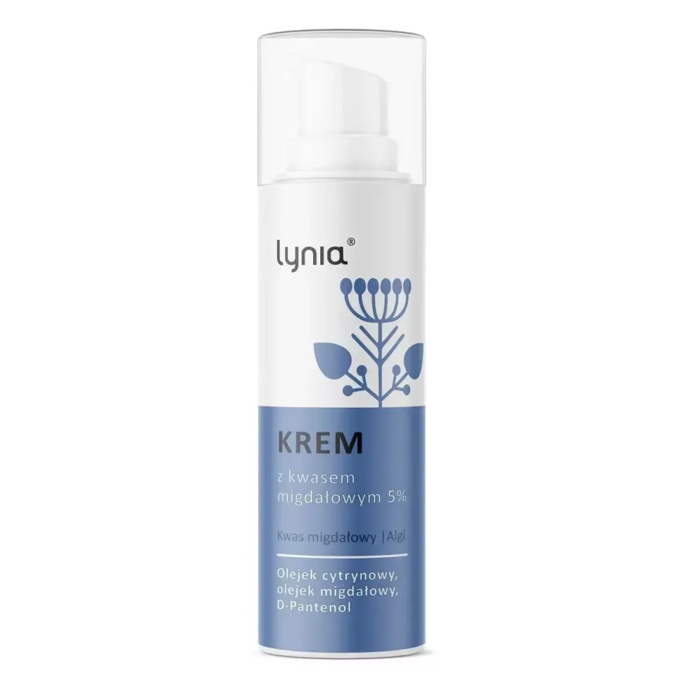 Krem z kwasem migdałowym 5% to idealna propozycja dla każdego rodzaju skóry, a w szczególności z tendencją do powstawania wyprysków, zaskórników.Kwas migdałowy działa antybakteryjnie, reguluje wydzielanie sebum oraz zmniejsza grubość warstwy rogowej. Rozjaśnia przebarwienia posłoneczne oraz plamy starcze. Ma zdolność odbudowy oraz regeneracji podstarzałej skóry poprzez wzrost poziomu nawilżenia.Kompleks morski z algami jest to botaniczny kompleks ekstraktów algowych. Działa intensywnie regenerująco i nawilżająco. Idealnie leczy stany zapalne oraz podrażnienia, przywracając ulgę i równowagę lipidową skórze.D-Pantenol poprawia nawilżenie, ujędrnia i uelastycznia skórę. Łagodzi wszelkie podrażnienia i stany zapalne a także przyspiesza regeneracje naskórka oraz gojenie ran.