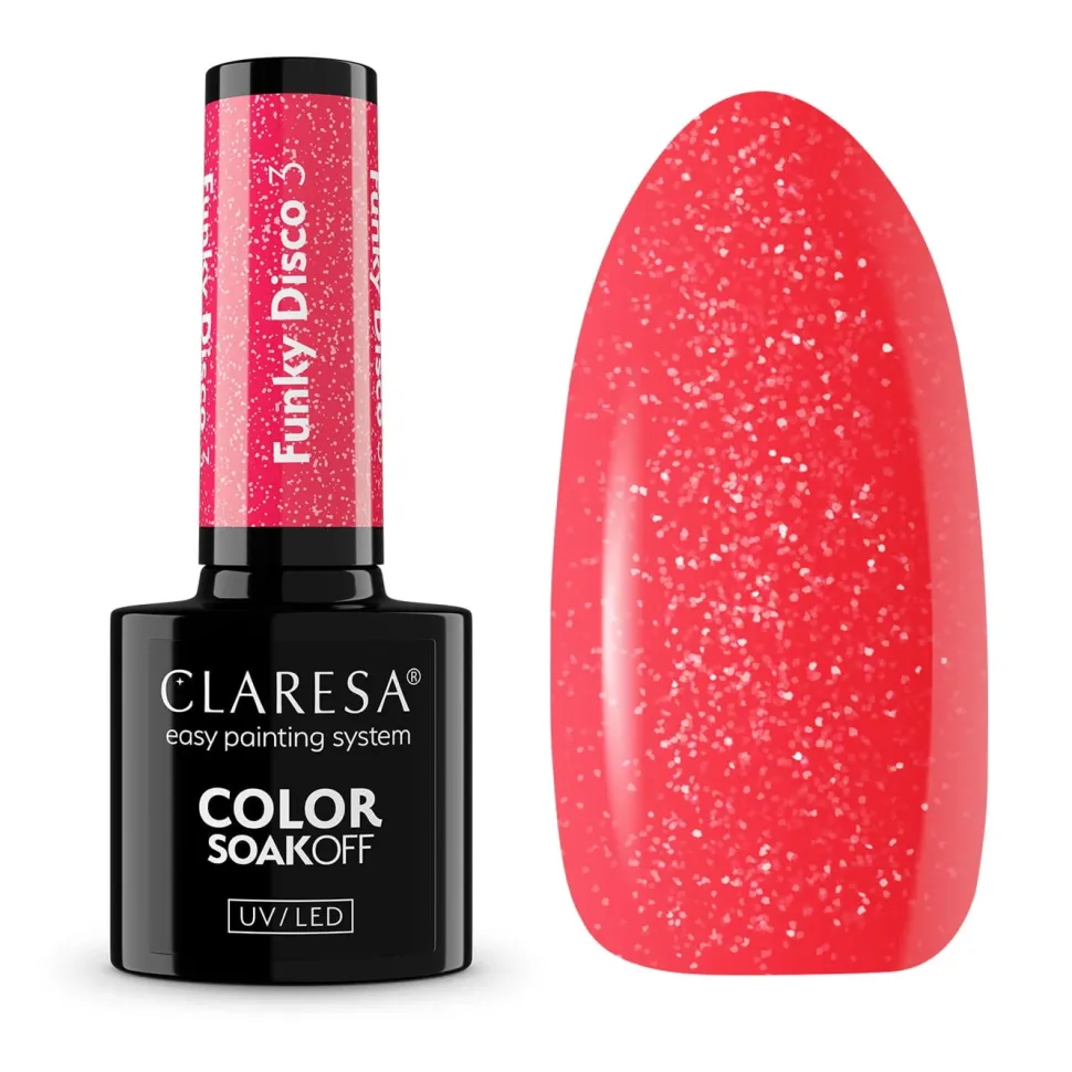 Kochasz rytmiczny pop? A może szalonego twista, które dźwięki porywają Cię do tańca? Uwielbiasz puszczać swoją kolekcję winyli i pozwalać, żeby muzyka sama niosła Twoje stopy? Poczuj się jak na plażowej wakacyjnej imprezie w stylu retro z limitowaną kolekcją Claresa Funky Disco. 7 lakierów hybrydowych w odcieniach różu, pomarańczu, żółci, zieleni, niebieskiego i fioletu z dodatkiem błyszczących drobinek to idealny wybór dla tych, którzy kochają wyrażać siebie poprzez kolor.