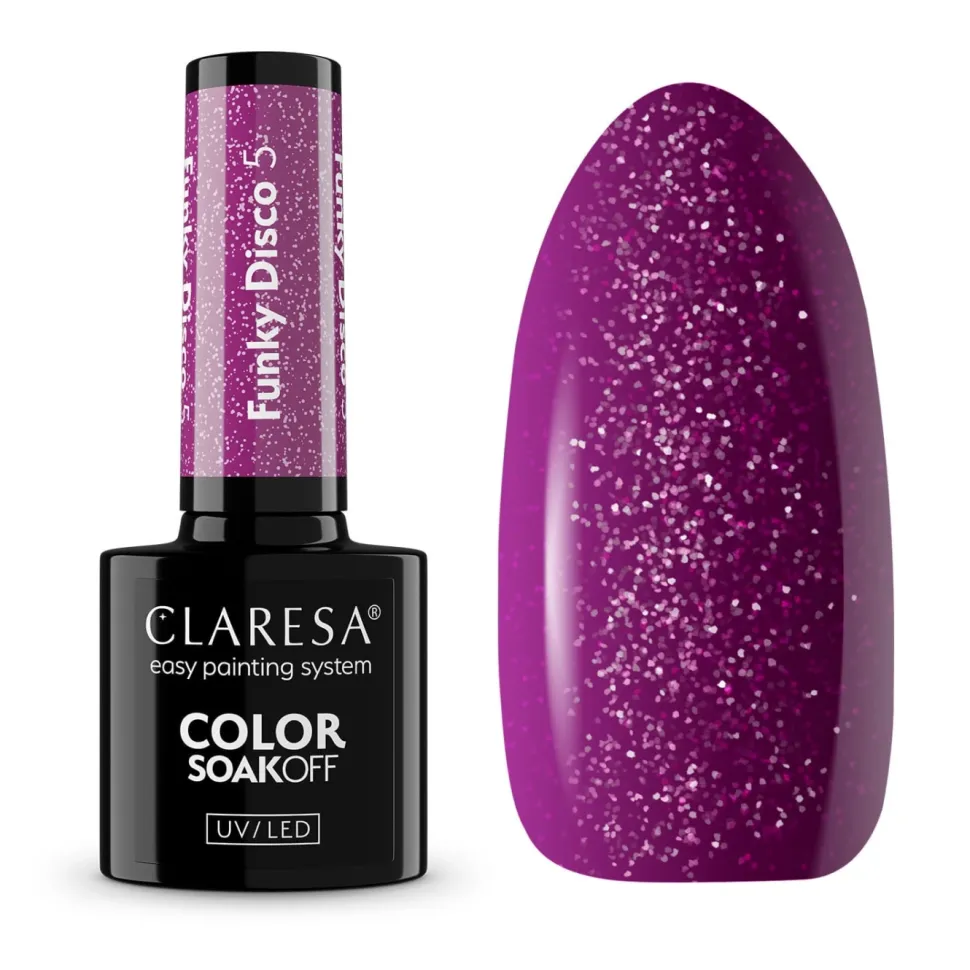 Kochasz rytmiczny pop? A może szalonego twista, które dźwięki porywają Cię do tańca? Uwielbiasz puszczać swoją kolekcję winyli i pozwalać, żeby muzyka sama niosła Twoje stopy? Poczuj się jak na plażowej wakacyjnej imprezie w stylu retro z limitowaną kolekcją Claresa Funky Disco. 7 lakierów hybrydowych w odcieniach różu, pomarańczu, żółci, zieleni, niebieskiego i fioletu z dodatkiem błyszczących drobinek to idealny wybór dla tych, którzy kochają wyrażać siebie poprzez kolor.