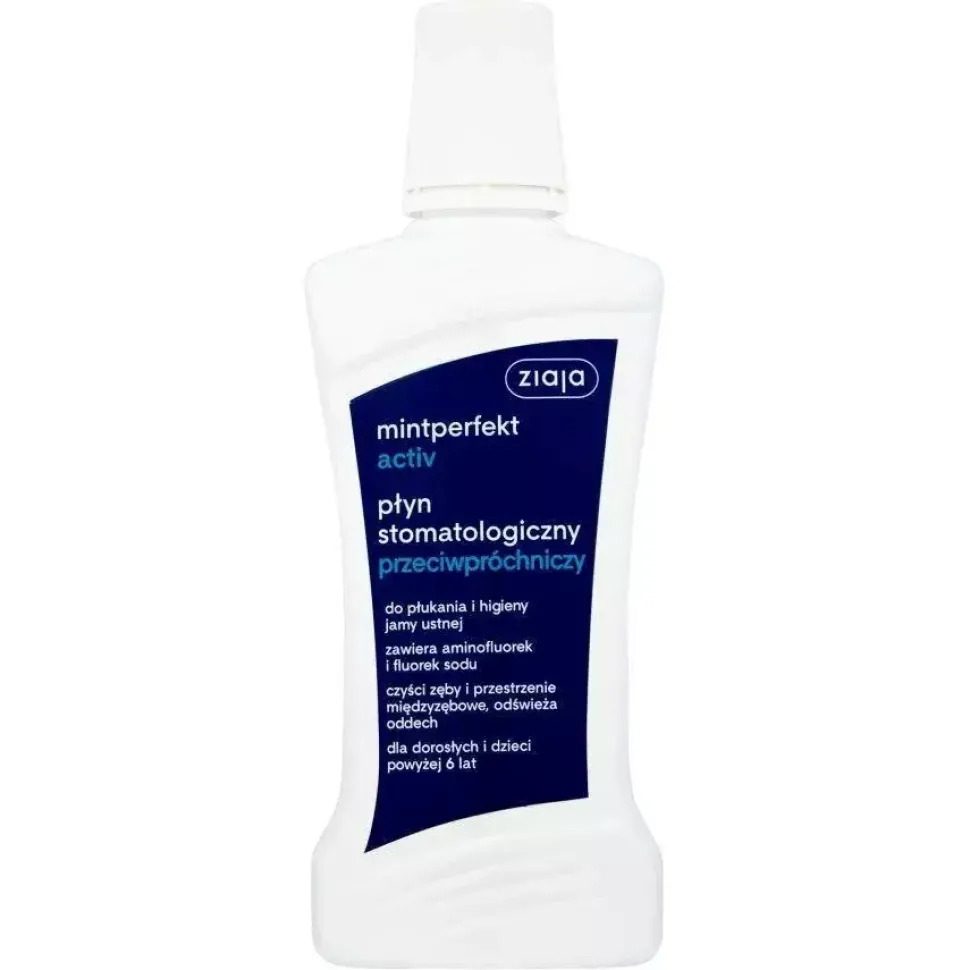 Mintperfekt Activ to delikatny płyn stomatologiczny do płukania jamy ustnej od marki Ziaja. W intensywny sposób oczyszcza jamę ustną oraz chroni zęby przed próchnicą.