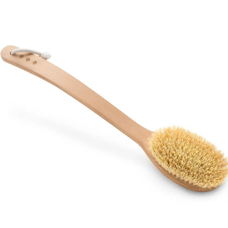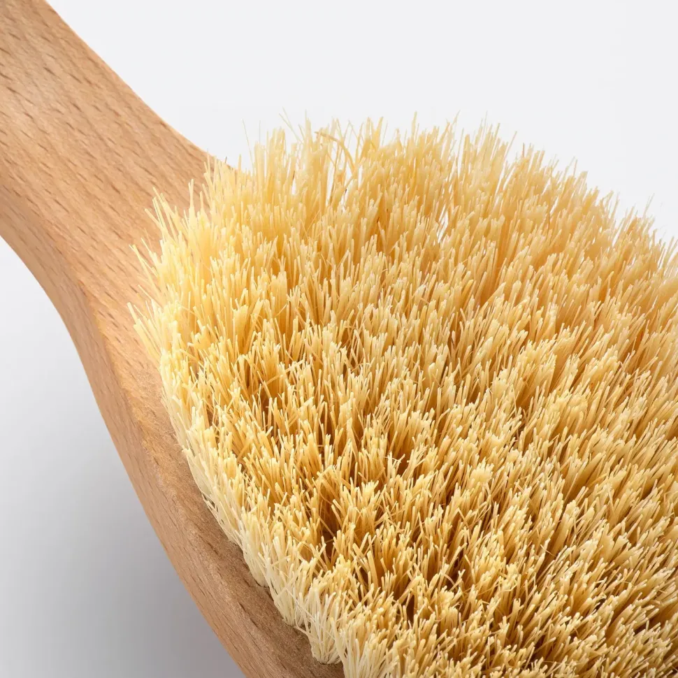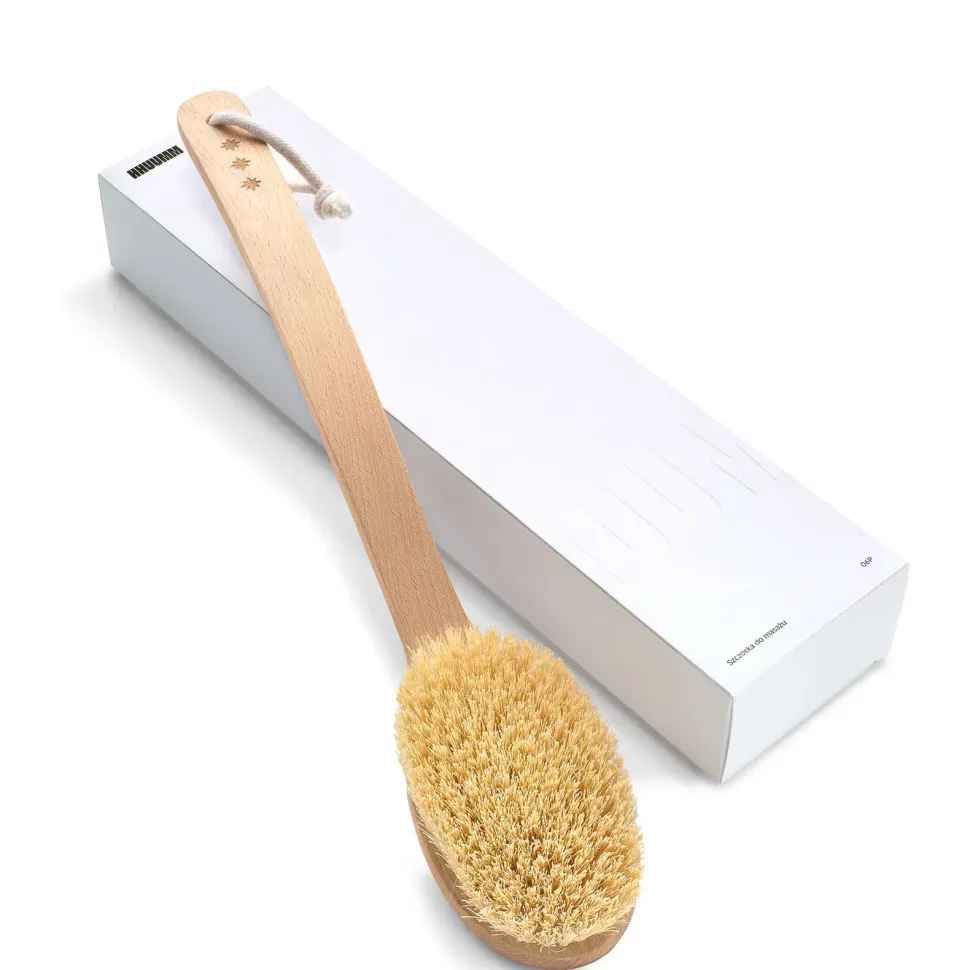 Kształt szczotki umożliwia wygodny uchwyt oraz dotarcie do trudno dostępnych miejsc na naszym ciele.Wykonana metodą rzemieślniczą z olejowanego (naturalny olej roślinny) drewna bukowego. Ręcznie gęsto nabita naturalnym włóknem kaktusa agawy.