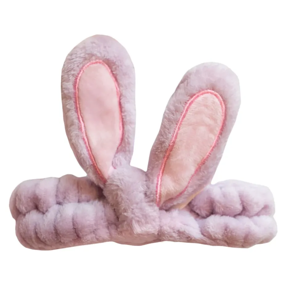 Pluszowo welurowa opaska z króliczymi uszkami przeznaczona do ochrony oraz podtrzymywania włosów podczas zabiegów kosmetycznych oraz makijażu. Jest wykonana z miękkiego, elastycznego materiału, dzięki czemu łatwo dopasowuje się do kształtu głowy. Jasny fiolet.