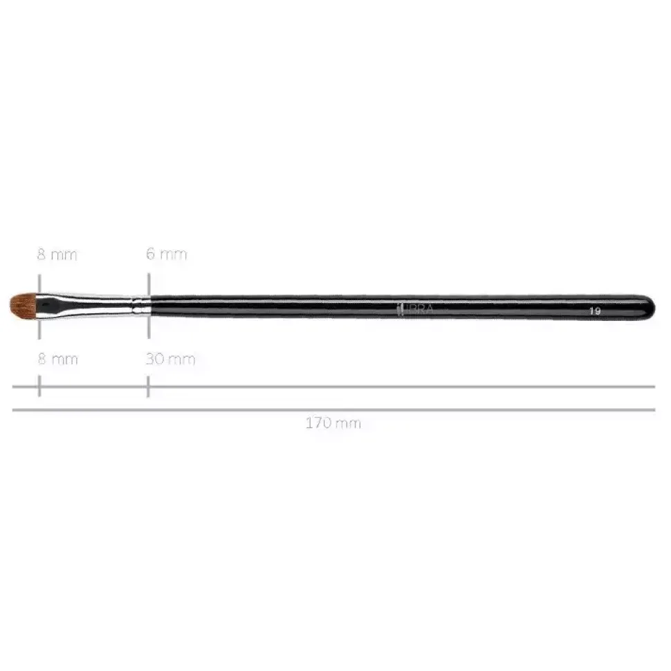 Pędzel o płaskim kształcie szczególnie polecany przy aplikacji cieni na mokro. Model wykonany z mieszanki włosia syntetycznego z naturalnym (nylon i soból) przez co sprawdzi się do aplikacji cieni prasowanych, sypkich i pigmentów.