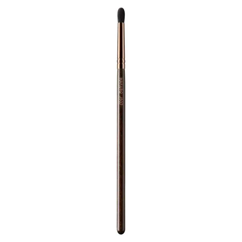 J507 to niewielka kulka o wydłużonym włosiu, co czyni ją wyjątkowym pędzlem do precyzyjnego nakładania i rozcierania cieni.Włosie – zarówno delikatne jak i odpowiednio gibkie, pozwala stopniowo i precyzyjnie rozcierać cienie na niewielkiej powierzchni, niemal jak za dotknięciem magicznej różdżki.Niewielki, wydłużony kształt wpasowuje się w załamanie powieki przez co będzie również niezastąpionym narzędziem w makijażu powieki opadającej.