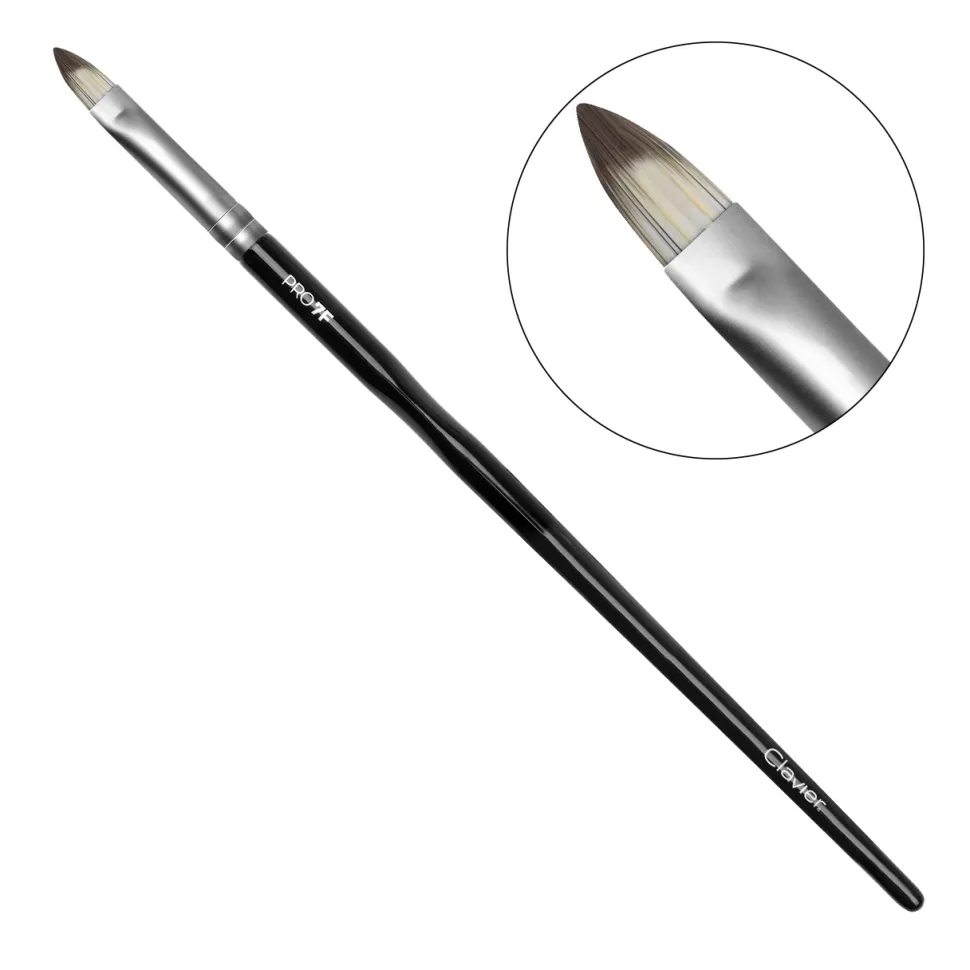 Ten precyzyjny pędzel o płaskim, szpiczastym kształcie z kolekcji Clavier PROSOLUTION PRO 7F jest idealnym narzędziem do aplikacji kosmetyków na powierzchni powiek i wzdłuż linii rzęs. Jego precyzyjna konstrukcja pozwala na dokładne nakładanie cieni, podkładów i korektorów w trudno dostępnych miejscach, zapewniając jednocześnie równomierne rozprowadzenie produktu. Wysokiej jakości włosie syntetyczne (imitacja lisa srebrnego) pędzla gwarantuje trwałość oraz komfort użytkowania, a jego ergonomiczny kształt umożliwia kontrolowanie precyzyjnych ruchów i łatwe blendowanie kolorów.Idealny do tworzenia wyrazistych linii, precyzyjnego konturowania oraz detali w makijażu oczu.