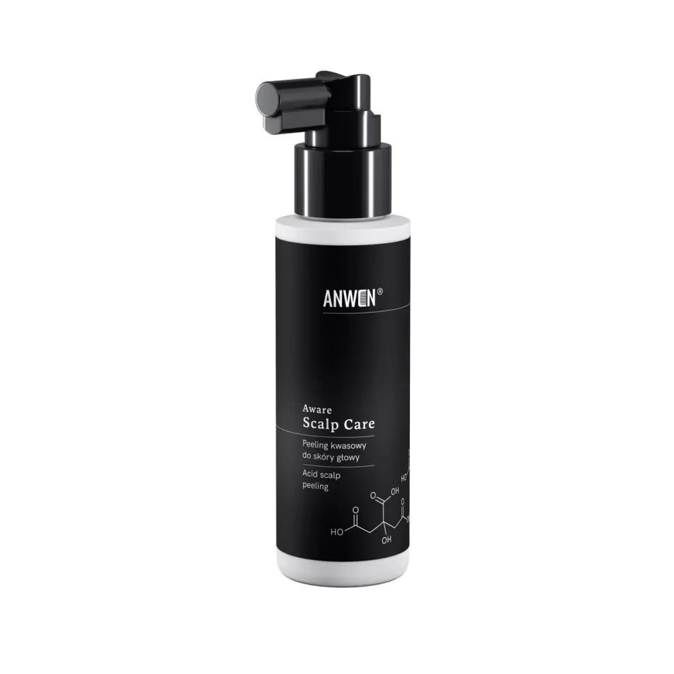 Wielozadaniowy peeling do skóry głowy marki Anwen zawiera mieszaninę kwasów AHA: glikolowego, mlekowego, cytrynowego i winowego w stężeniach, które zapewniają skuteczne złuszczenie martwego naskórka, oczyszczenie, normalizację pracy gruczołów łojowych oraz stymulację procesów regeneracyjnych skóry.