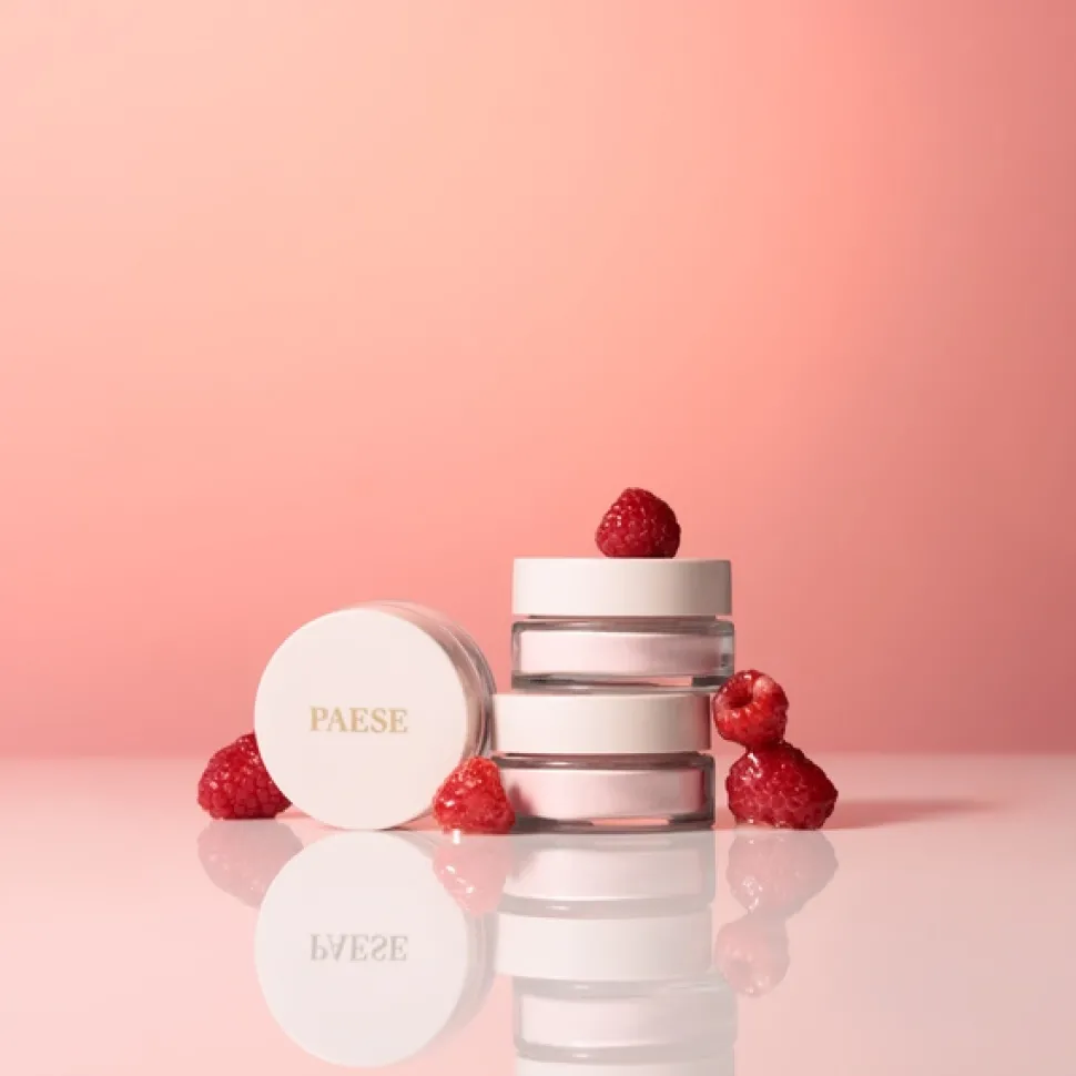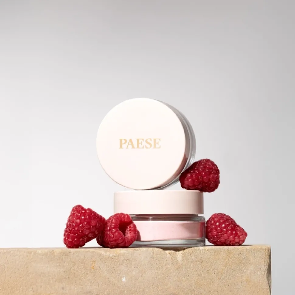Malinowy puder PAESE powstał ze sproszkowanych pestek malin, aby zapewnić skórze maksimum korzyści: