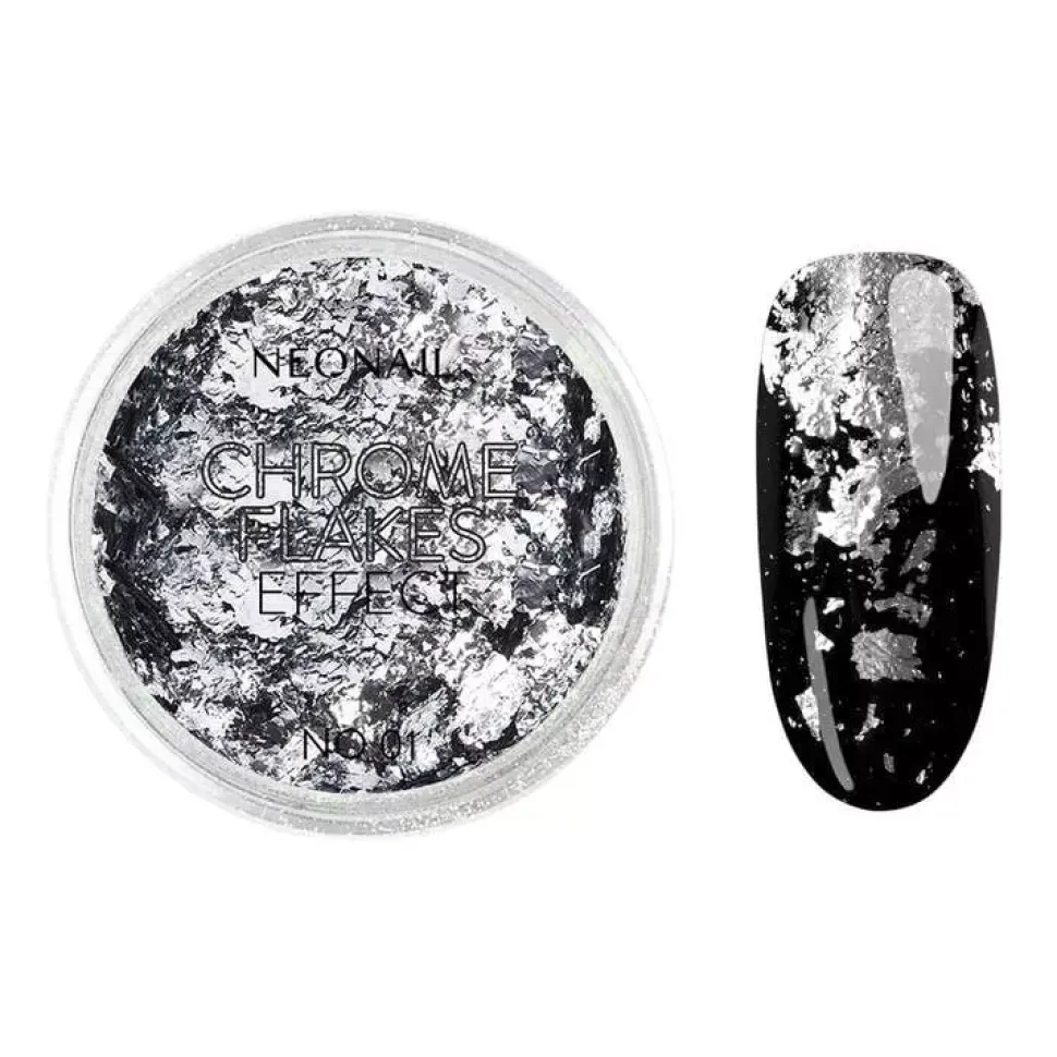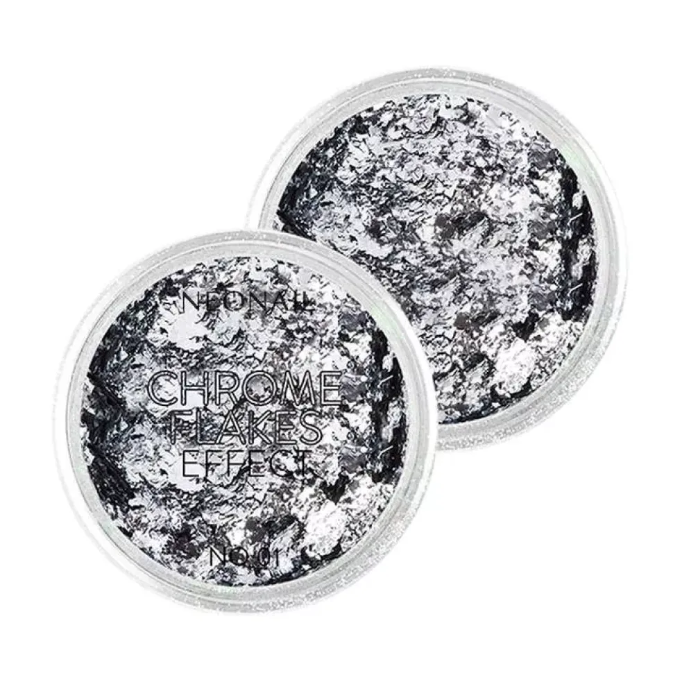 Pyłek Chrome Flakes Effect No. 01 to metaliczne folie w postaci niezwykle błyszczących, cienkich płatków, które stworzą na Twoich paznokciach mieniący się, wielowymiarowy efekt.Ten elegancki manicure sprawi, że zabłyśniesz na każdej imprezie! Folie możesz aplikować na dowolny kolor hybrydy, jednak najbardziej spektakularne efekty uzyskasz na czarnym lakierze hybrydowym.