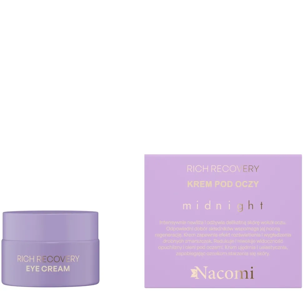Odkryj tajemnicę młodszego, świeższego spojrzenia dzięki kremowi pod oczy Rich recovery. Intensywnie nawilża, wygładza i odżywia delikatną skórę wokół oczu. Dzięki zawartym składnikom aktywnym widocznie redukuje worki i cienie pod oczami oraz wspiera naturalne procesy regeneracji naskórka. Ponadto ujędrnia i uelastycznia, zapobiegając oznakom starzenia się skóry.
