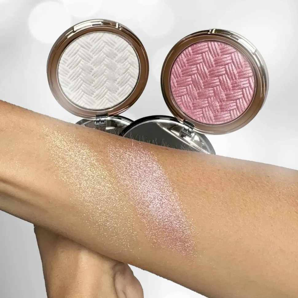 Rozświetlacz SHINE ON nadaje skórze unikalnego błysku, tworząc mieniącą się na różowo taflę.